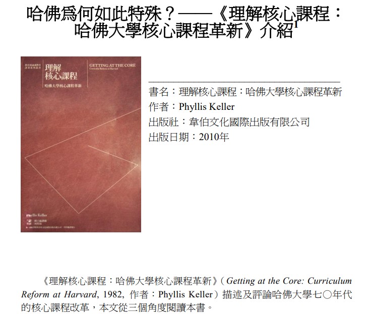哈佛為何如此特殊?──《理解核心課程:哈佛大學核心課程革新》介紹