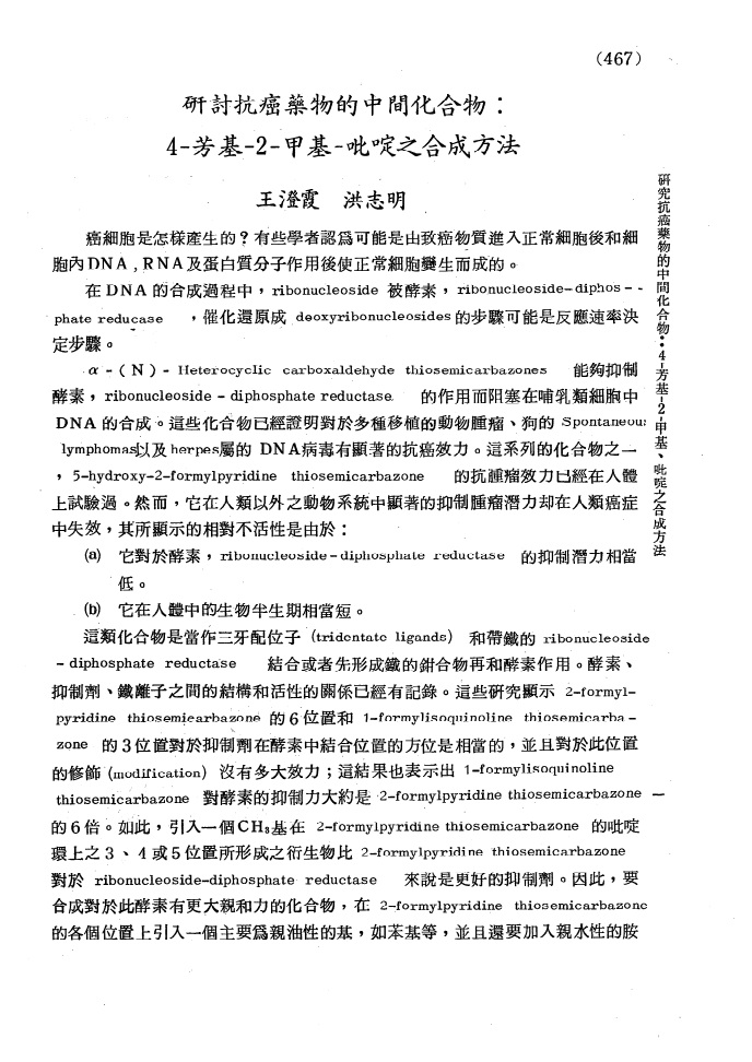 研討抗癌藥物的中間化合物:4—芳基—2—甲基啶之合成方法
