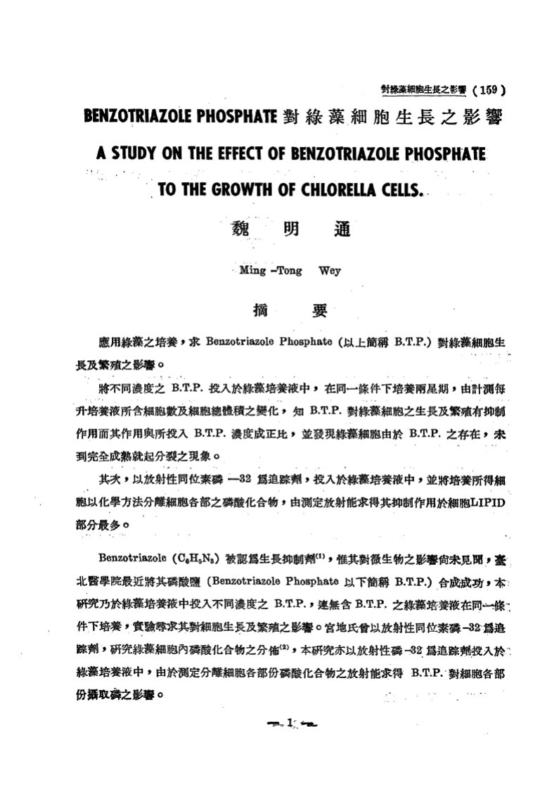 BENZOTRIAZOLE PHOSPHATE對綠藻細胞生長之影響