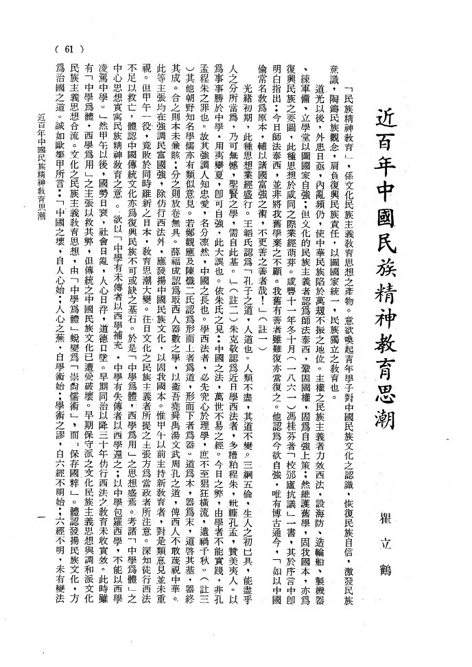 近百年中國民族精神教育思潮