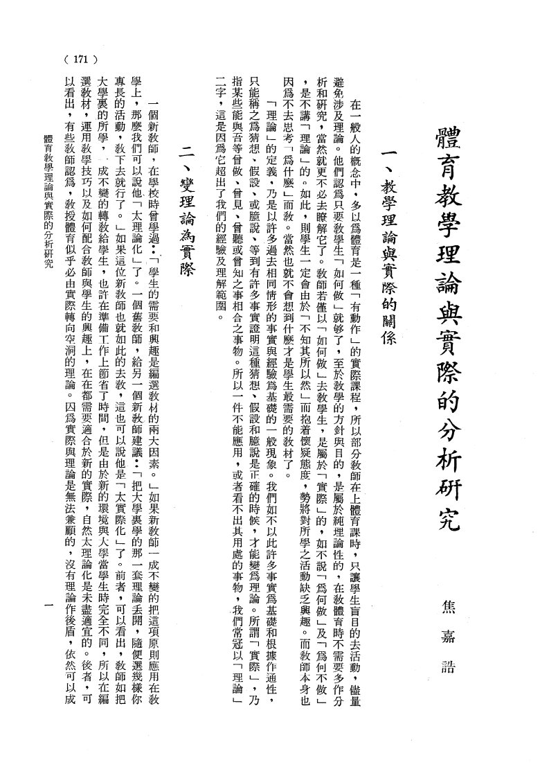 體育教學理論與實際的分析研究