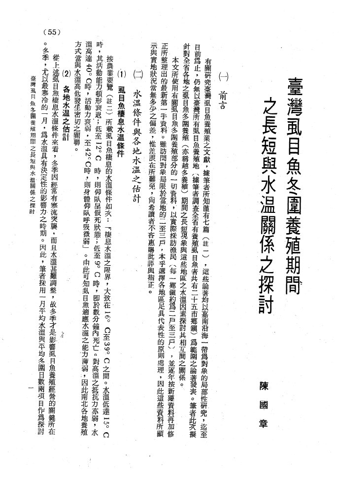 臺灣虱目魚冬圍養殖期間之長短與水溫關係之探討