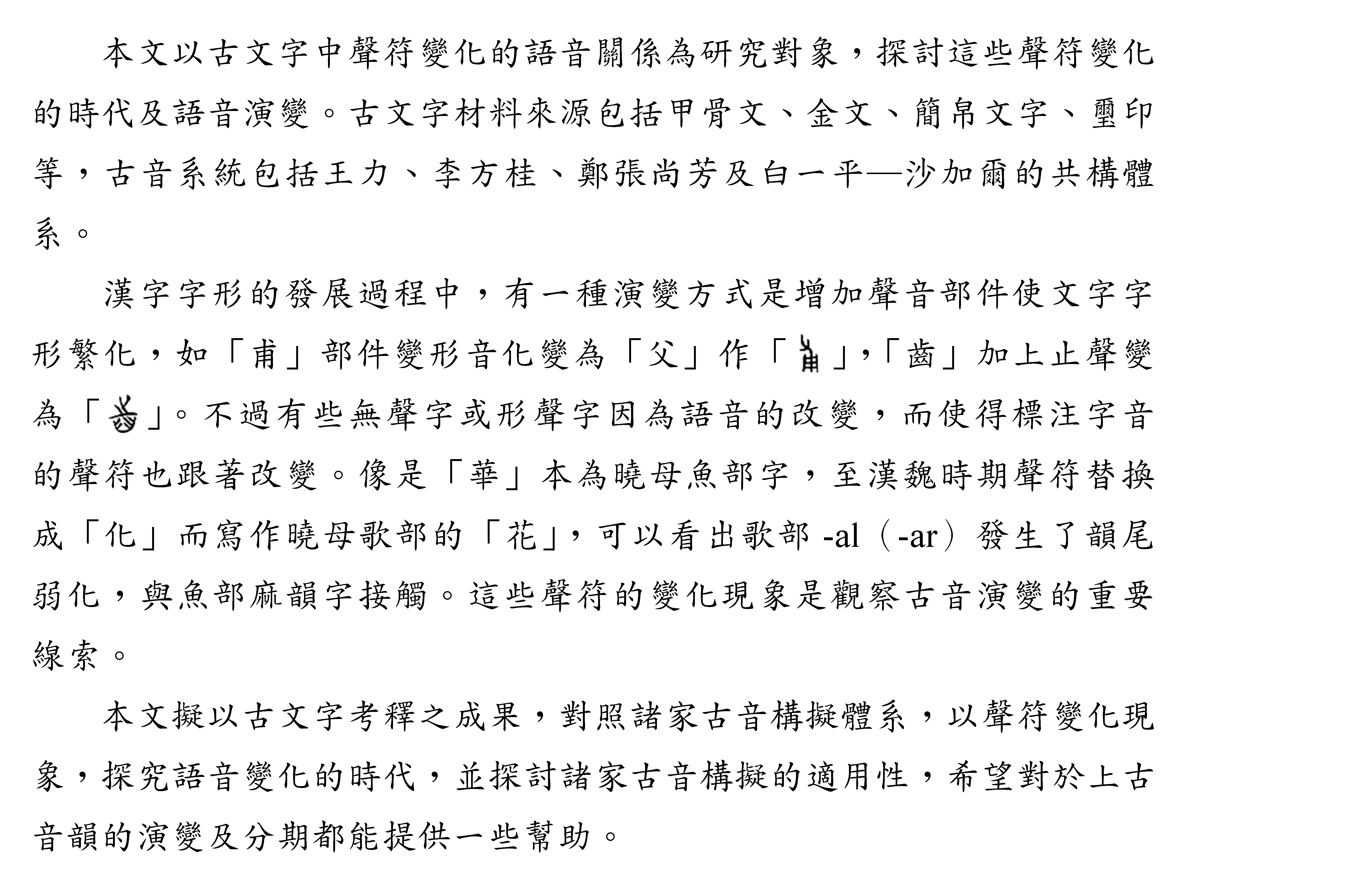 上古音; 古文字; 古音構擬; 古音演變; 聲符變化