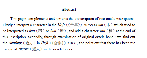 oracle inscriptions; Interpretive transcriptions; complement