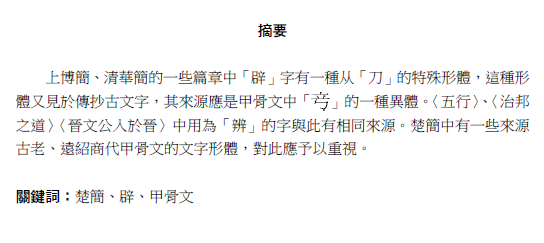 Keyword: Chu bamboos, pi, oracle-bone inscriptions