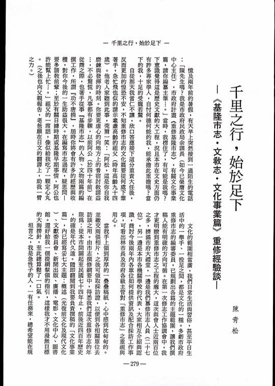 千里之行,始於足下─《基隆市志‧文教志‧文化事業篇》重修經驗談