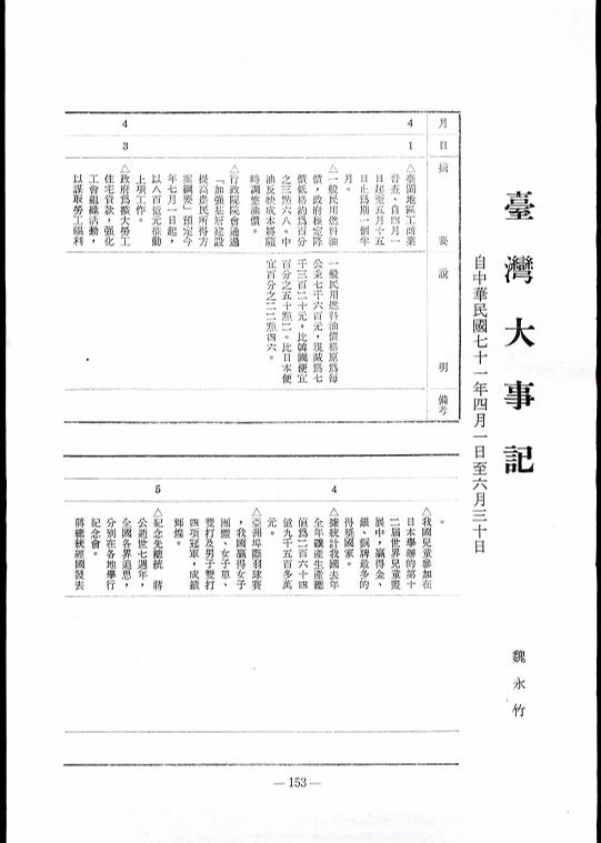 臺灣省大事記(七十一年四月一日至六月三十日)