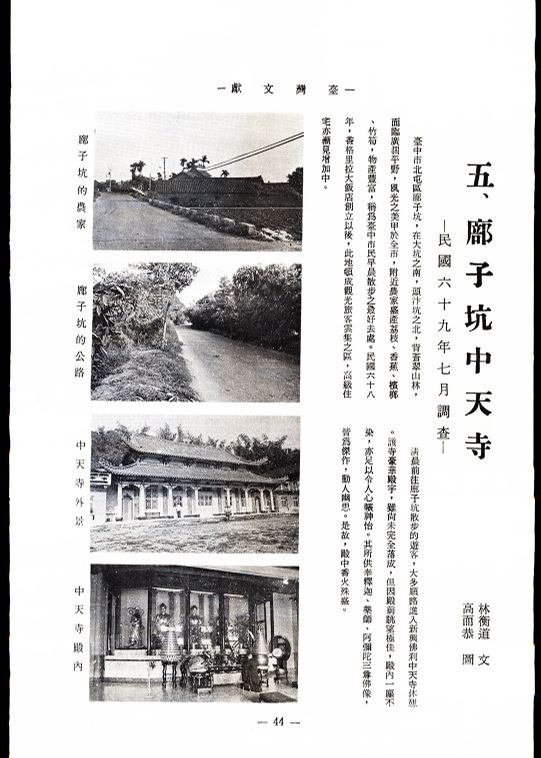 臺灣名勝古蹟調查(連載)五、廓子坑中天寺