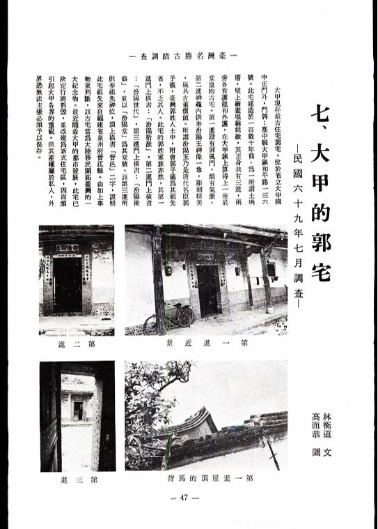 臺灣名勝古蹟調查(連載)七、大甲的郭宅