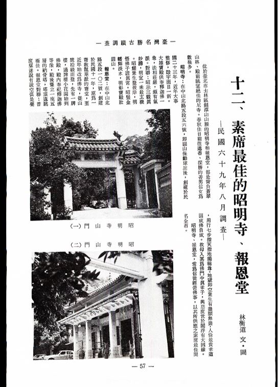 臺灣名勝古蹟調查(連載)十二、素席最佳的昭明寺、報恩堂