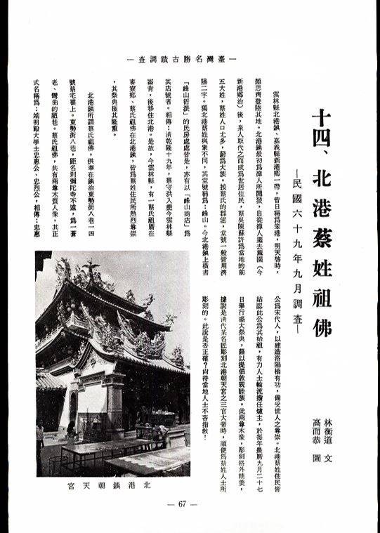 臺灣名勝古蹟調查(連載)十四、北港蔡姓的祖佛