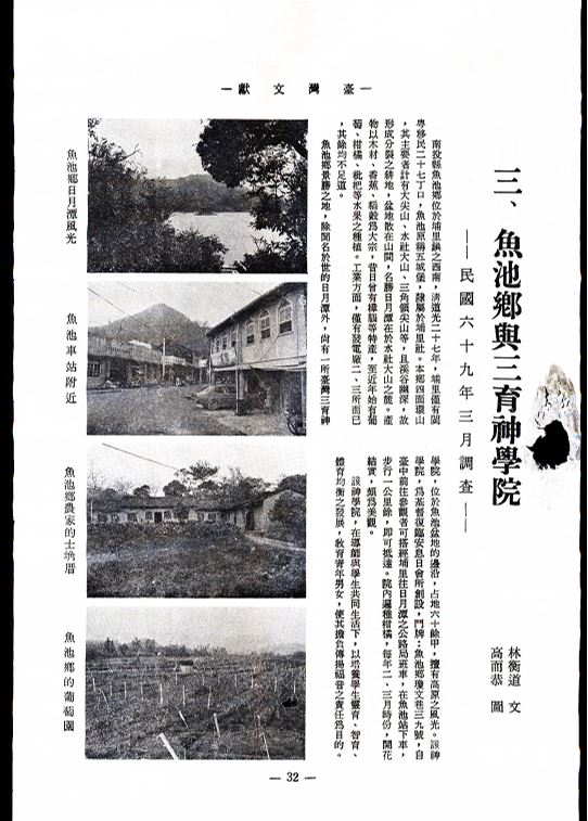臺灣名勝古蹟調查(連載)三、魚池鄉與三育神學院