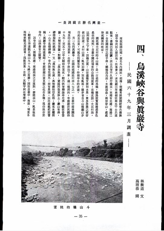 臺灣名勝古蹟調查(連載)四、烏溪峽谷與真嚴寺