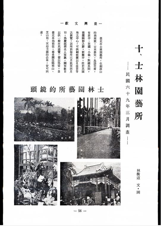 臺灣名勝古蹟調查(連載)十、士林園藝所