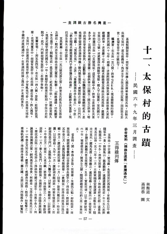 臺灣名勝古蹟調查(連載)十一、太保村的古蹟