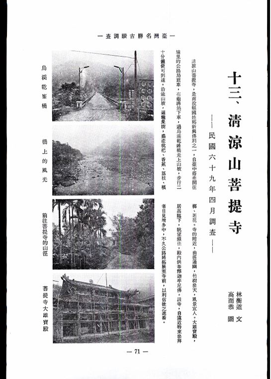 臺灣名勝古蹟調查(連載)十三、清涼山菩提寺