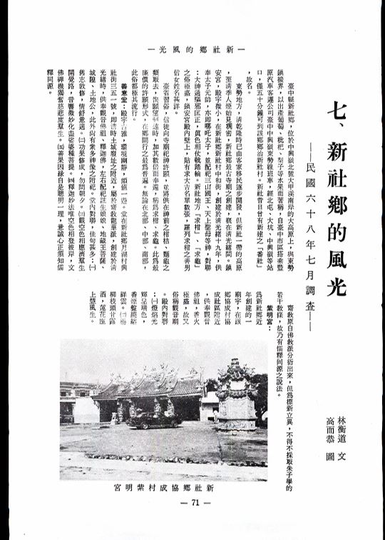 臺灣名勝古蹟調查(連載)七、新社鄉的風光