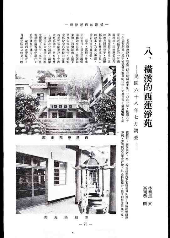 臺灣名勝古蹟調查(連載)八、橫溪的西蓮淨苑