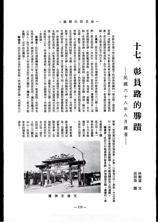 臺灣名勝古蹟調查(連載)十七、彰員路的勝蹟