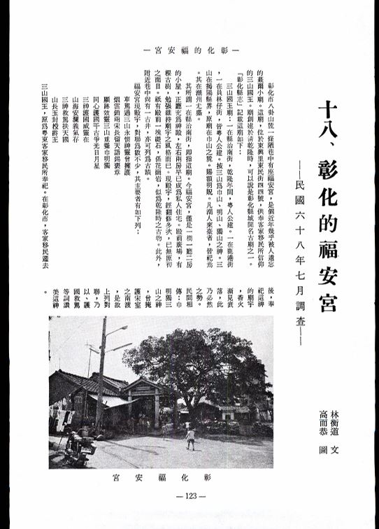 臺灣名勝古蹟調查(連載)十八、彰化的福安宮
