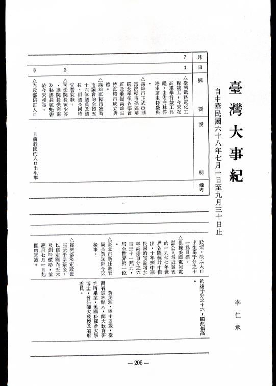 臺灣省大事記(六十八年七月一日至九月三十日)