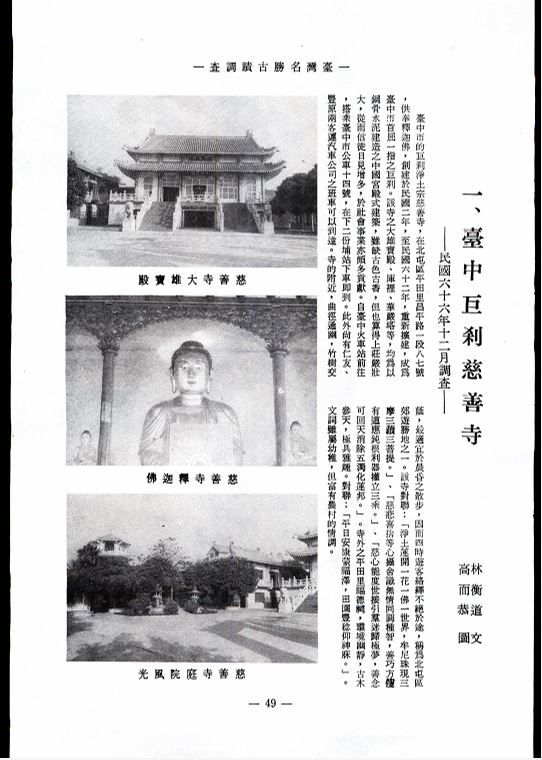 臺灣名勝古蹟調查(連載)一、臺中巨剎慈善寺