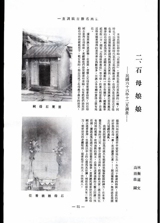 臺灣名勝古蹟調查(連載)二、石母娘娘