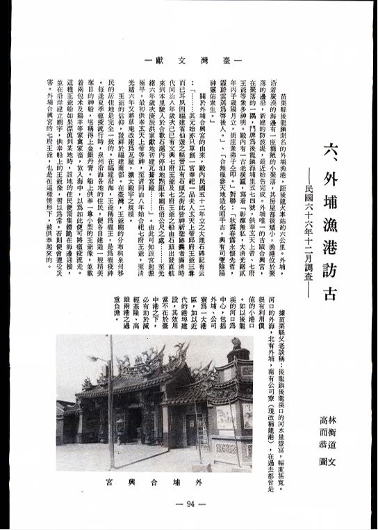 臺灣名勝古蹟調查(連載)六、外埔漁港訪古