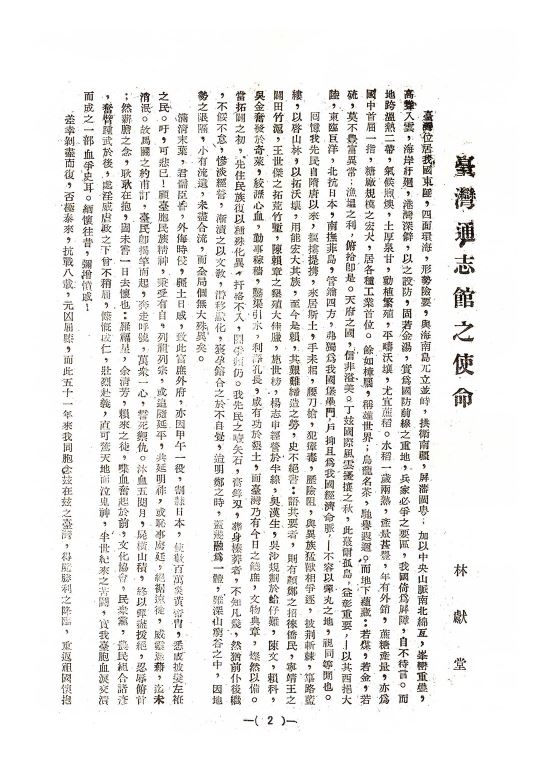 臺灣省通志館之使命