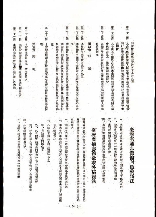 館訊六、臺灣省通志館徵求外稿辦法