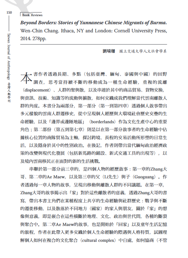 Wen-Chin Chang: Beyond Borders: Stories of Yunnanese Chinese Migrants of Burma