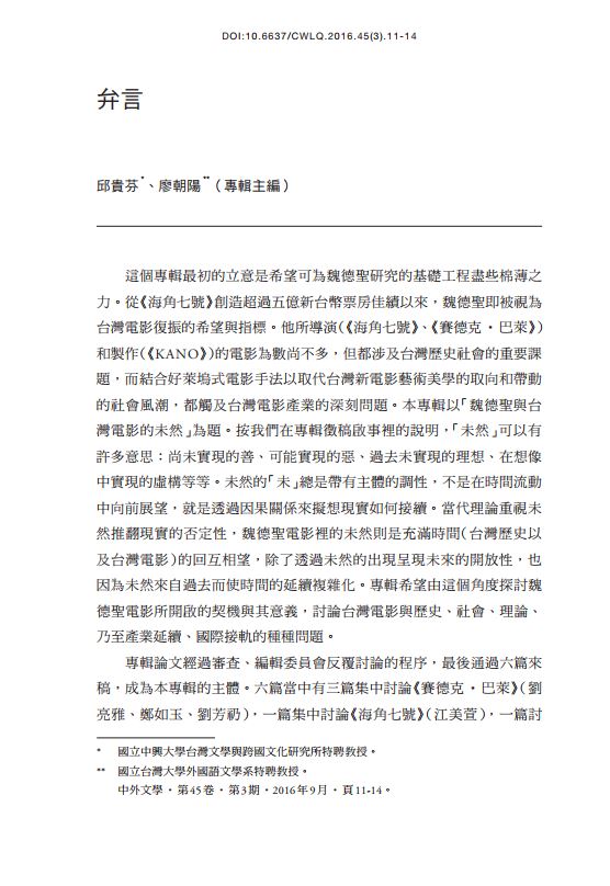 (專輯主編;國立台灣大學外國語文學系特聘教授 Distinguished Professor, Department of Foreign Languages and Literatures, National Taiwan University)