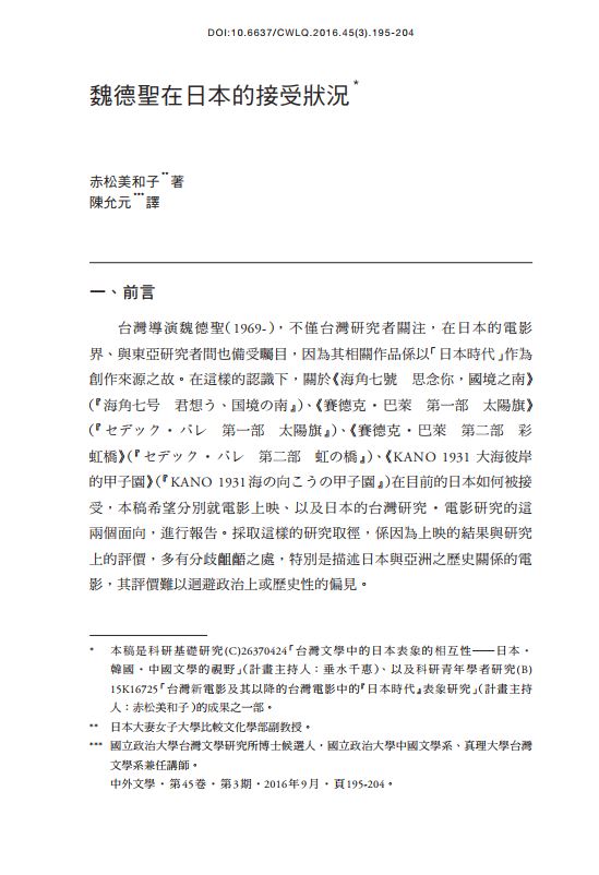 The Acceptance of the Movies of Wei Te-Sheng in Japan