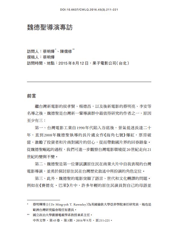 (國立政治大學廣播電視學系教授兼系主任 Professor, Department of Radio and Television, National Chengchi University)
