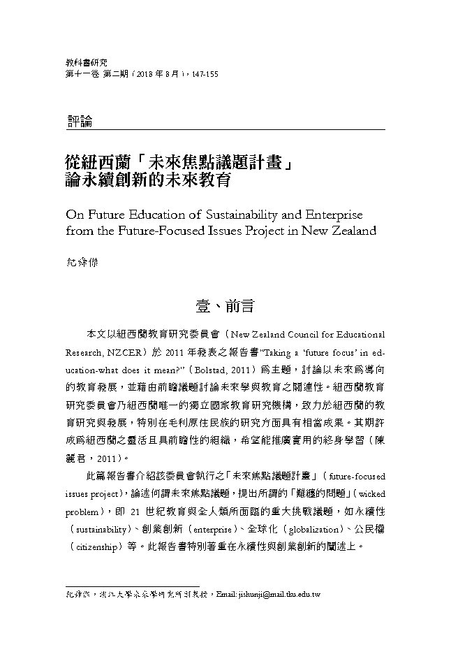 從紐西蘭「未來焦點議題計畫」論永續創新的未來教育