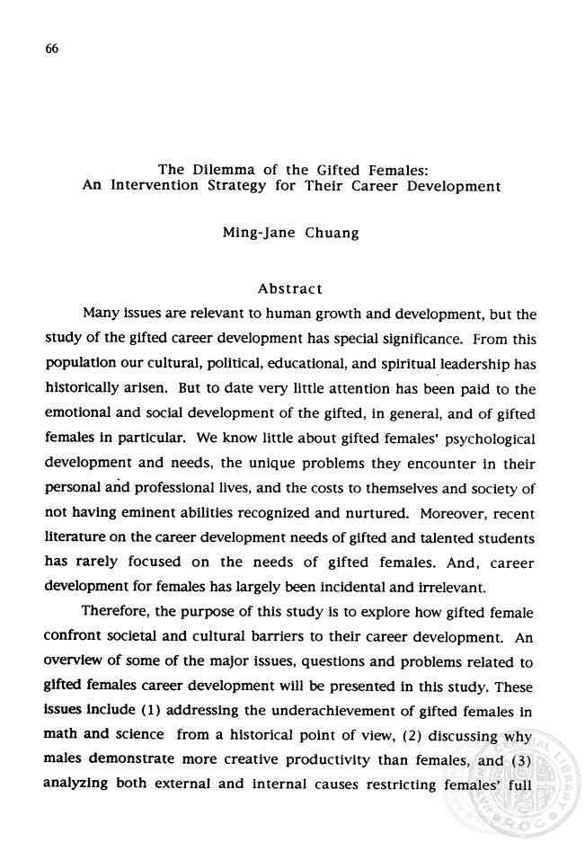 The Dilemma of the Gifted Females: An Intervention Strategy for Their Career Development