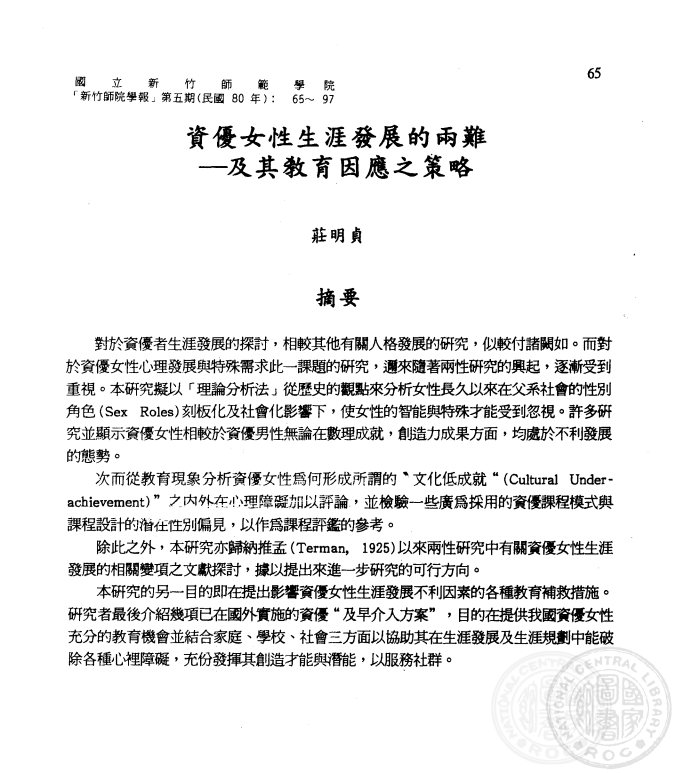 資優女性生涯發展的兩難﹣﹣及其教育因應之策略