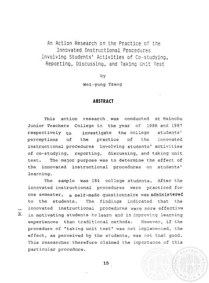 An Action Research on the Practice of the Innovated Instructional Procedures Involving Students1 Activities of Go-studying, Reporting, Discussing, and Taking Unit Test