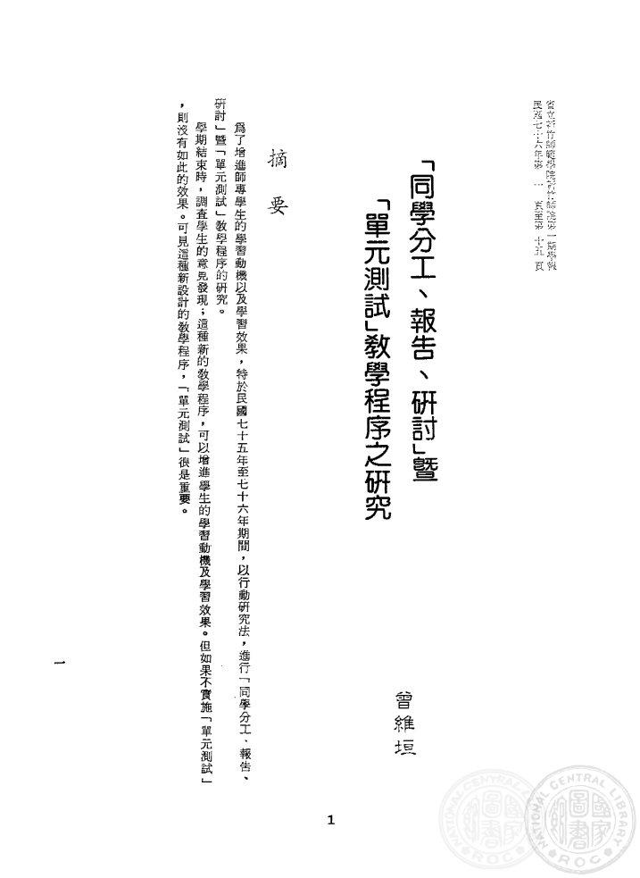 「同學分工、報告、研討」暨「單元測試」教學程序之研究