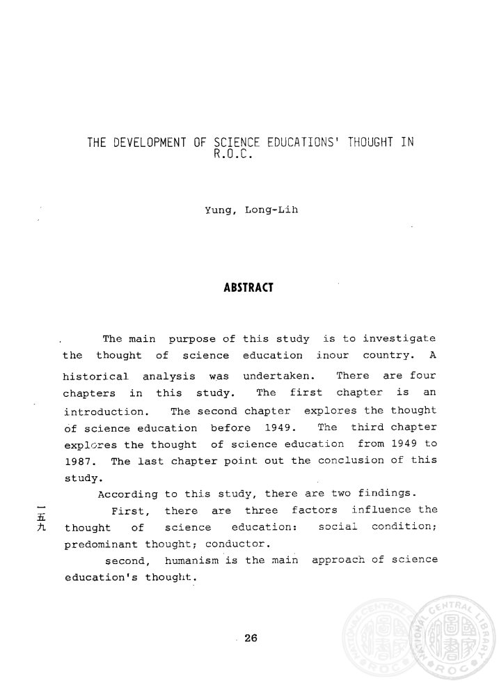 THE DEVELOPMENT OF SCIENCE EDUCATIONS1 THOUGHT IN R.O.C.