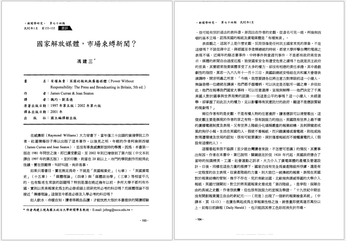 國立政治大學新聞學系教授 Professor, Department of Journalism, National Chengchi University