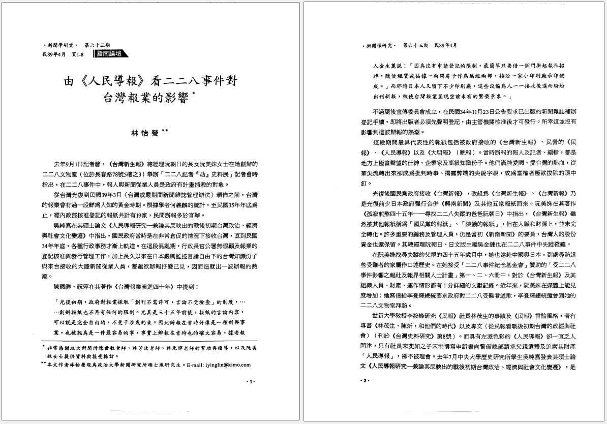 由「人民導報」看二二八事件對臺灣報業的影響