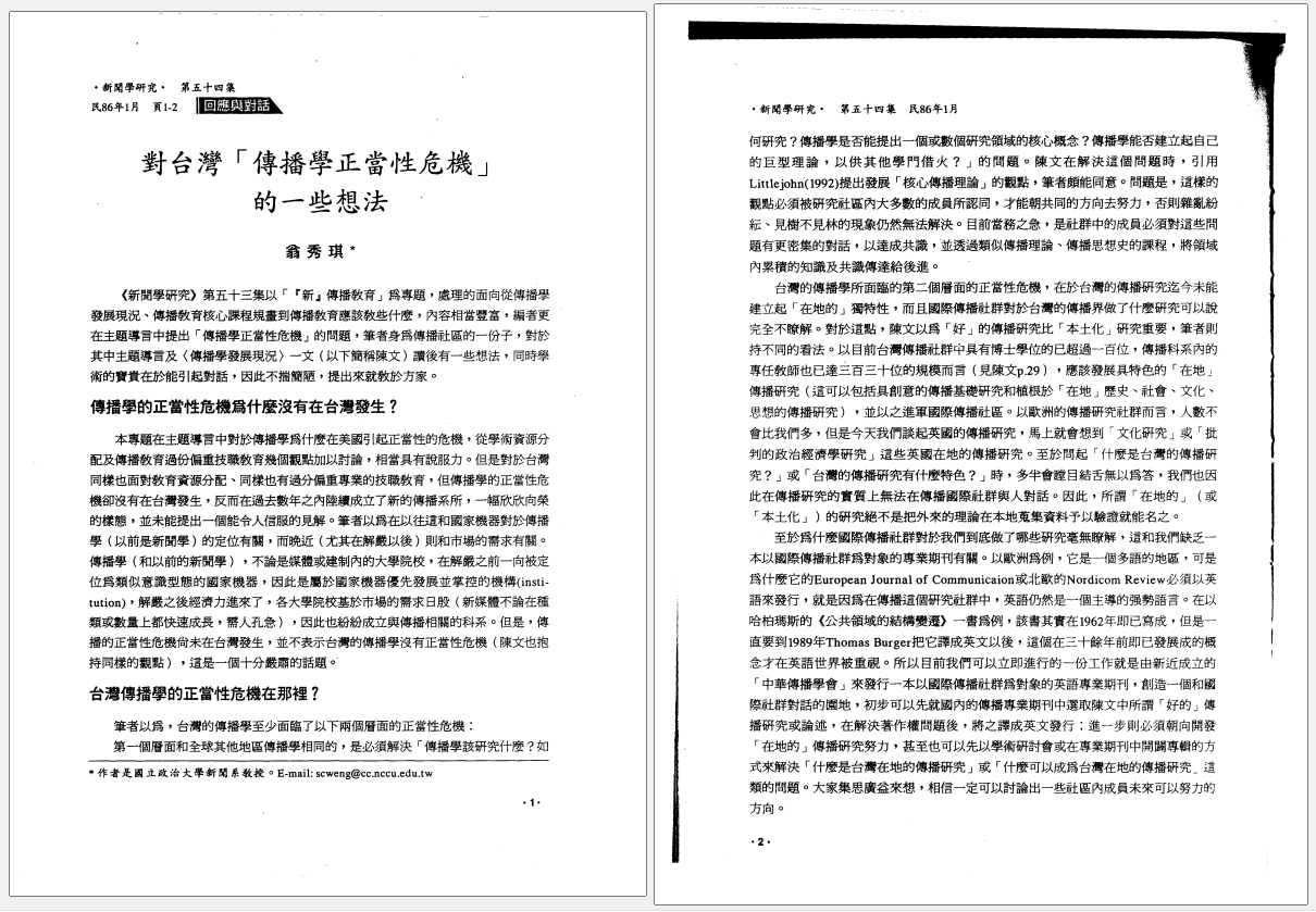 (國立政治大學新聞系教授 Professor, Department of Journalism, National Chengchi University)