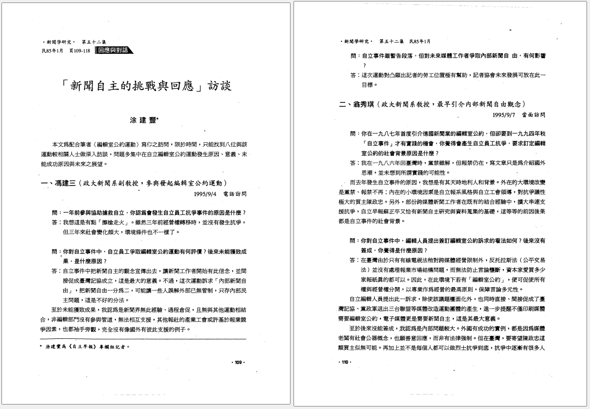 「新聞自主的挑戰與回應」訪談