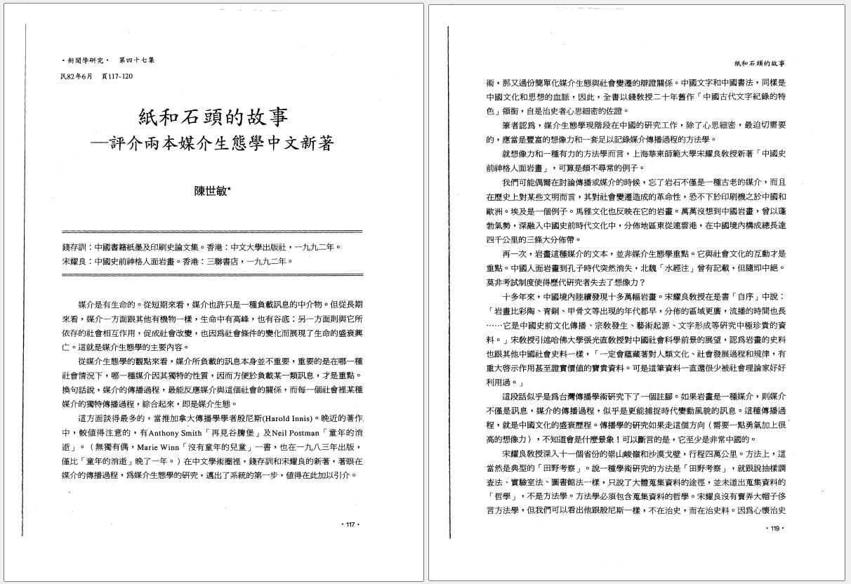 紙和石頭的故事-評介兩本媒介生態學中文新著