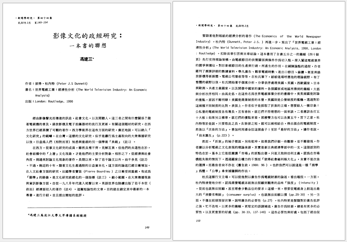 影像文化的政經研究:一本書的聯想