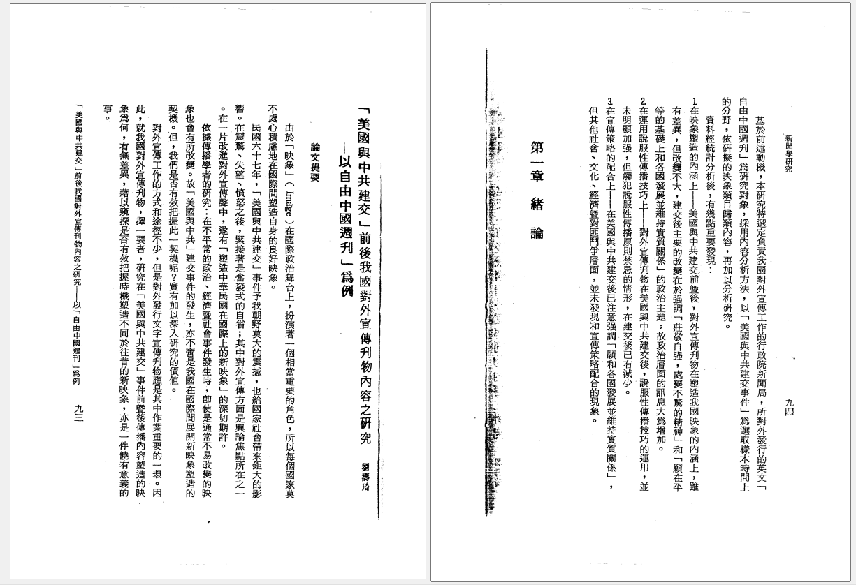 「美國與中共建交」前後我國對外宣傳刊物內容之研究-以「自由中國週刊」為例