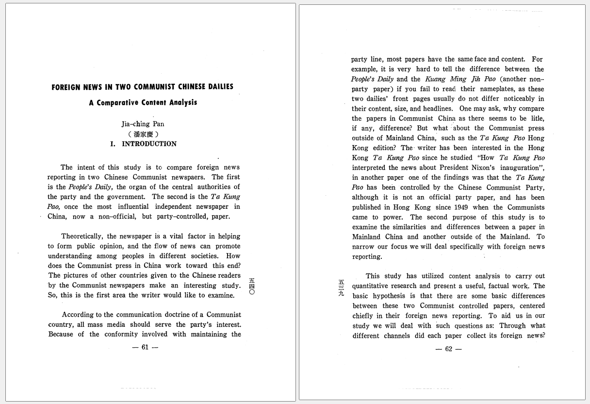 Foreign news in two communist Chinese dailies - a comparative content analysis