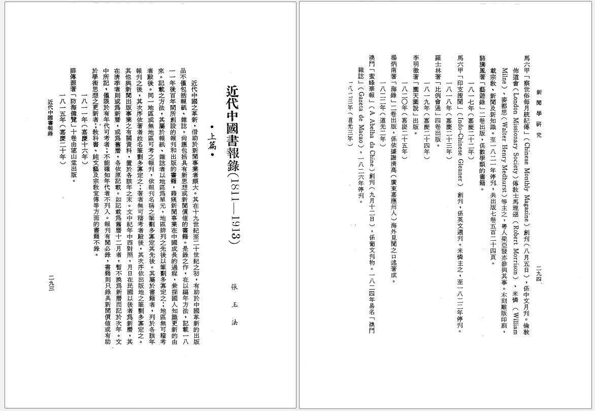 近代中國書報錄(1811-1913)-上篇