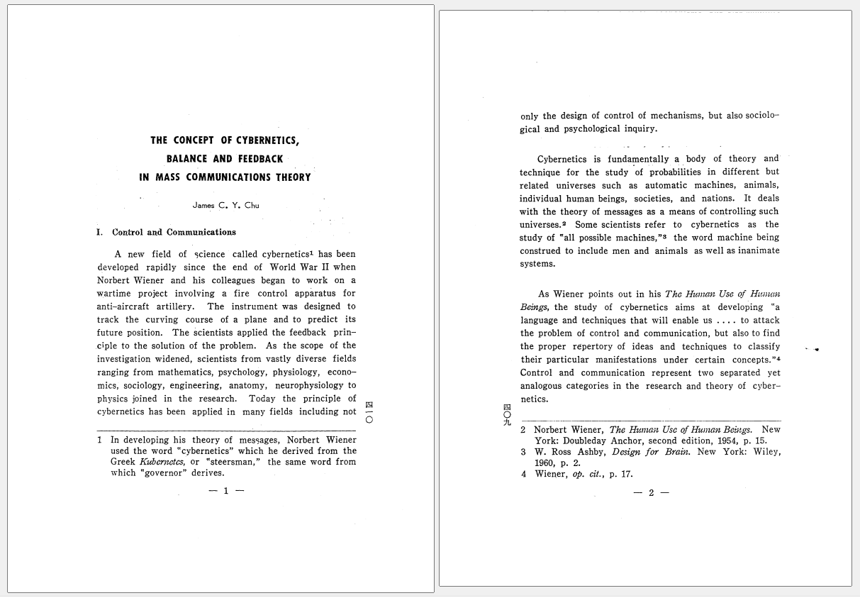 The Concept of Cybernetics, Balance and Feedback in Mass Communications Theory